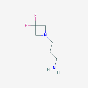 The synthesis of 3-(3,3-Difluoroazetidin-1-yl)propan-1-amine typically involves the nucleophilic substitution reaction of 3,3-difluoroazetidine with propan-1-amine or its derivatives. The key step is the formation of the azetidine ring bearing the difluoro substituents at the 3-position, followed by its functionalization with the propan-1-amine side chain.