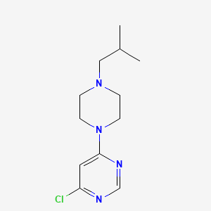 4-Chloro-6-(4-isobutylpiperazin-1-yl)pyrimidine plays a significant role in various biochemical reactions. It interacts with several enzymes and proteins, influencing their activity and function. One of the key interactions is with the enzyme dihydroorotate dehydrogenase, which is involved in the pyrimidine biosynthesis pathway. This interaction can inhibit the enzyme’s activity, leading to a reduction in pyrimidine synthesis, which is crucial for DNA and RNA production in rapidly proliferating cells.