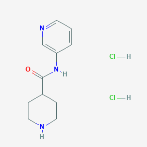 The mechanism of action of N-(pyridin-3-yl)piperidine-4-carboxamide dihydrochloride involves its interaction with specific molecular targets and pathways. The compound is known to inhibit certain enzymes and receptors, leading to alterations in cellular processes. For example, it may inhibit cyclin-dependent kinases, which play a crucial role in cell cycle regulation . This inhibition can result in cell cycle arrest and apoptosis in cancer cells .