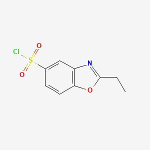 2-Ethyl-1,3-benzoxazole-5-sulfonyl chloride is similar to other sulfonyl chloride derivatives, such as 2-methyl-1,3-benzoxazole-5-sulfonyl chloride and 2-phenyl-1,3-benzoxazole-5-sulfonyl chloride. its unique ethyl group provides distinct reactivity and properties compared to these compounds. The presence of the ethyl group can influence the electronic properties of the molecule, affecting its reactivity and the types of reactions it can undergo.