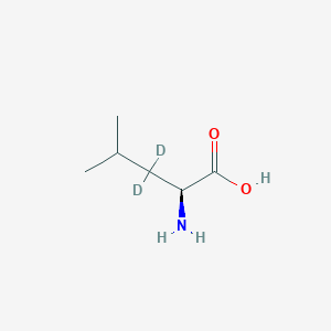 This compound is a stable isotope-labeled form of L-Leucine, an essential branched-chain amino acid (BCAA) that plays a critical role in protein synthesis and various metabolic processes.[1][2] In this compound, two hydrogen atoms at the gamma-carbon position are replaced with deuterium, a stable, non-radioactive isotope of hydrogen. This isotopic substitution results in a molecule that is chemically identical to its unlabeled counterpart but has a higher molecular weight, making it distinguishable by mass spectrometry (MS) and nuclear magnetic resonance (NMR) spectroscopy.[2] This property makes this compound an invaluable tool in metabolic research, proteomics, and drug development, where it is primarily used as a tracer to study metabolic pathways and as an internal standard for the precise quantification of L-Leucine and its metabolites in biological samples.[1][2]