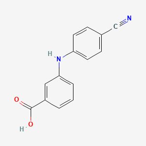 The mechanism by which 3-[(4-Cyanophenyl)amino]benzoic acid exerts its effects depends on its molecular targets and pathways. For example, in biochemical assays, it may interact with specific enzymes, inhibiting or activating their activity. The exact mechanism can vary based on the context of its application.