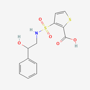 3-[(2-Hydroxy-2-phenylethyl)sulfamoyl]thiophene-2-carboxylic acid is a complex organic compound with the molecular formula C13H13NO5S2. It features several functional groups, including a carboxylic acid, a sulfamoyl group, a hydroxyl group, and a thiophene ring. Despite its intriguing structure, the biological activity of this compound remains largely unexplored in scientific literature.