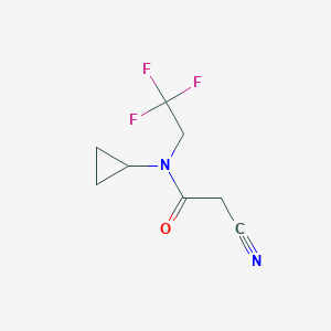 The mechanism of action of 2-cyano-N-cyclopropyl-N-(2,2,2-trifluoroethyl)acetamide involves its interaction with specific molecular targets and pathways. The cyano group can participate in nucleophilic addition reactions, while the trifluoroethyl group may enhance the compound’s lipophilicity and membrane permeability. These properties can influence the compound’s biological activity and its ability to interact with enzymes, receptors, or other biomolecules.