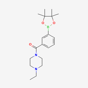 The synthesis of 1-Ethyl-4-[3-(tetramethyl-1,3,2-dioxaborolan-2-yl)benzoyl]piperazine typically involves multiple steps. One common method includes the borylation of a benzoyl piperazine derivative using a dioxaborolane reagent. The reaction is usually catalyzed by a palladium catalyst under inert conditions to prevent oxidation. The reaction conditions often involve the use of solvents such as tetrahydrofuran (THF) or dimethylformamide (DMF) and temperatures ranging from room temperature to 80°C .