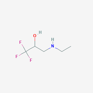 3-(Ethylamino)-1,1,1-trifluoropropan-2-ol is an organic compound that has garnered attention in medicinal chemistry due to its potential biological activities. Characterized by a trifluoromethyl group, an ethylamino group, and a hydroxyl (-OH) group, this compound is believed to interact with various molecular targets, influencing cellular processes and exhibiting therapeutic potential.