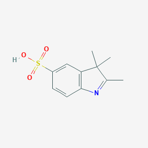 2,3,3-trimethyl-3H-indole-5-sulfonic acid is a heterocyclic organic compound that has garnered attention in various fields of chemical research. Its molecular structure, featuring a sulfonated indole (B1671886) core, imparts specific physicochemical properties that are central to its utility. The presence of the sulfonic acid group enhances water solubility, a crucial characteristic for its application in biological and aqueous systems.