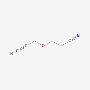 3-Prop-2-ynoxypropanenitrile (systematic name: 3-(prop-2-yn-1-yloxy)propanenitrile) is a nitrile derivative featuring a propargyloxy substituent. For instance, 3-(prop-2-yn-1-yloxy)phthalonitrile (a related phthalonitrile derivative) is synthesized via a nucleophilic aromatic substitution (SNAr) reaction between propargyl alcohol and nitro-substituted phthalonitrile in the presence of anhydrous K₂CO₃ in DMF . This method highlights the feasibility of introducing propargyloxy groups into nitrile-containing frameworks, suggesting a parallel pathway for synthesizing this compound.