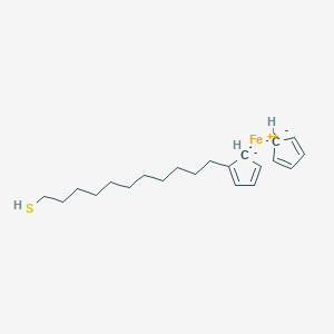 This compound is an organometallic compound featuring a ferrocene (B1249389) moiety linked to a C11 alkyl chain terminated with a thiol group. This unique structure allows for strong anchoring to gold surfaces via the thiol group, while the electroactive ferrocene unit provides a readable signal for various sensing applications.