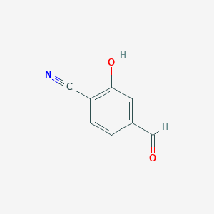 Research concerning this compound, also known as 3-cyano-4-hydroxybenzaldehyde, has explored its synthesis and its role as a precursor in the creation of other organic compounds. One notable synthetic route involves the formylation of 4-cyanophenol. jst.go.jporgsyn.org Studies have demonstrated the successful formylation of phenols containing electron-withdrawing groups, such as the cyano group, using reagents like hexamethylenetetramine in strong acids. jst.go.jp Another method involves the reaction of 5-bromo-2-hydroxybenzonitrile (B1273605) with a formylating agent.