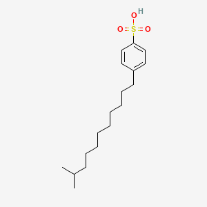 The formation of this compound proceeds via an electrophilic aromatic substitution (SEAr) reaction, a fundamental process in organic chemistry. nih.gov The synthesis involves the reaction of 10-methylundecylbenzene with a suitable sulfonating agent, typically sulfur trioxide (SO3) or a source thereof like fuming sulfuric acid (oleum). docbrown.infolibretexts.org Mechanistic studies, combining kinetic analysis and the characterization of reaction intermediates, have been crucial in elucidating the precise pathway of this transformation. While research may not focus uniquely on the 10-methylundecyl isomer, extensive studies on analogous long-chain alkylbenzenes (LABs) provide a robust framework for understanding the reaction mechanism. researchgate.netscribd.comresearchgate.net