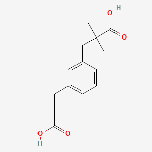 The preparation of alpha,alpha,alpha',alpha'-tetramethyl-1,3-benzenedipropionic acid involves synthetic strategies that focus on constructing the 1,3-benzenedipropionic acid skeleton with four methyl groups at the alpha positions of the propionic acid side chains. The synthetic challenge lies in the selective introduction of these methyl groups and the preservation of the acid functionalities.