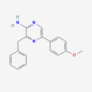 The mechanism of action of 2-Amino-3-benzyl-5-(4-methoxyphenyl)pyrazine involves its interaction with specific molecular targets and pathways. The compound may bind to enzymes or receptors, modulating their activity and leading to various biological effects. Detailed studies on its molecular targets and pathways are essential to fully understand its mechanism of action .