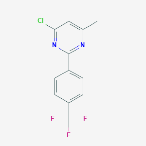 4-Chloro-6-methyl-2-[4-(trifluoromethyl)phenyl]pyrimidine is a trisubstituted pyrimidine derivative characterized by a chlorine atom at position 4, a methyl group at position 6, and a 4-(trifluoromethyl)phenyl substituent at position 2. This compound belongs to a class of heterocyclic aromatic molecules widely studied for their applications in medicinal chemistry, agrochemicals, and materials science. The trifluoromethyl group enhances lipophilicity and metabolic stability, while the chloro and methyl groups influence electronic and steric properties, making it a versatile scaffold for functionalization .