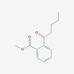 The mechanism of action of methyl 2-pentanoylbenzoate involves its interaction with various molecular targets. As an ester, it can undergo hydrolysis to release the corresponding acid and alcohol. This hydrolysis can be catalyzed by esterases, enzymes that target ester bonds. The released products can then participate in further biochemical pathways .