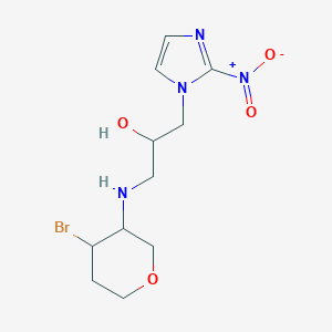 (((4-Bromotetrahydro-2H-pyran-3-yl)amino)methyl)-2-nitro-1H-imidazole-1-ethanol, also known by its CAS number 134419-55-9, is a compound that has garnered attention in the field of medicinal chemistry due to its potential biological activities. This article aims to provide a comprehensive overview of its biological activity, including case studies, research findings, and relevant data.