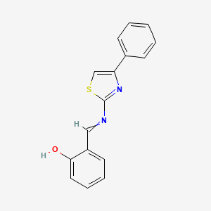 BenchChem offers high-quality Phenol, 2-(((4-phenyl-2-thiazolyl)imino)methyl)- suitable for many research applications. Different packaging options are available to accommodate customers' requirements. Please inquire for more information about Phenol, 2-(((4-phenyl-2-thiazolyl)imino)methyl)- including the price, delivery time, and more detailed information at info@benchchem.com.