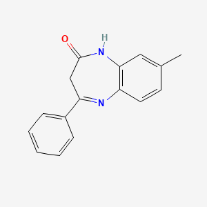 The compound 2H-1,5-benzodiazepin-2-one, 1,3-dihydro-8-methyl-4-phenyl- (CAS Number: 6276-48-8) is part of the benzodiazepine family, which is known for its psychoactive properties. Benzodiazepines are widely used in clinical settings for their anxiolytic, sedative, and muscle-relaxant effects. This article explores the biological activity of this specific compound, including its pharmacological effects, mechanisms of action, and potential therapeutic applications.