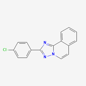 The synthesis of this compound involves the construction of its distinctive triazolo[5,1-a]isoquinoline ring system and the incorporation of the 4-chlorophenyl substituent. A reported synthetic pathway describes the reaction of an acyl hydrazide with a carboximidate to yield an intermediate compound. Current time information in Bangalore, IN. This intermediate undergoes cyclization in the presence of sodium hydride, forming the 1,2,4-triazole (B32235) ring fused to the isoquinoline (B145761) core. Current time information in Bangalore, IN. The synthesis is completed by the oxidation of this intermediate using N-bromoacetamide to afford this compound. Current time information in Bangalore, IN.