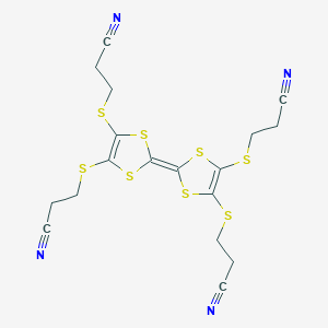 The mechanism of action of 2,3,6,7-Tetrakis(2-cyanoethylthio)tetrathiafulvalene involves its ability to undergo oxidation and reduction reactions, facilitating electron transfer. This property is crucial for its role in conductive materials. The molecular targets are typically other molecules or materials that can accept or donate electrons, forming charge-transfer complexes .
