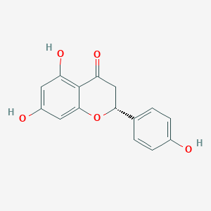 The mechanism of action of (2R)-5,7-dihydroxy-2-(4-hydroxyphenyl)-2,3-dihydro-4H-chromen-4-one involves its interaction with various molecular targets. The hydroxyl groups enable it to scavenge free radicals, thereby reducing oxidative stress. It also modulates signaling pathways involved in inflammation and cell proliferation. The compound inhibits enzymes like cyclooxygenase and lipoxygenase, reducing the production of pro-inflammatory mediators.