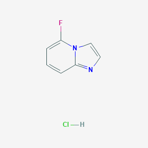 The mechanism of action of 5-Fluoroimidazo[1,2-a]pyridine hydrochloride involves its interaction with specific molecular targets, such as enzymes or receptors, leading to the modulation of biological pathways. For instance, its derivatives have been shown to inhibit enzymes like methionyl-tRNA synthetase, which is crucial for protein synthesis in certain pathogens . The fluorine atom enhances the compound’s binding affinity and bioavailability, making it more effective in its biological activity .