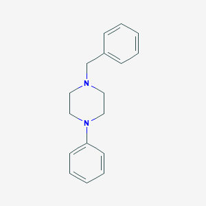 The synthesis can be achieved by the direct N-alkylation of 1-phenylpiperazine with a benzyl halide, such as benzyl chloride or benzyl bromide.[1] The reaction is typically carried out in a suitable solvent like dichloromethane in the presence of a non-nucleophilic base, such as triethylamine, to neutralize the acid formed during the reaction.[1]