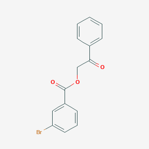 The primary reactants for the synthesis of this compound are 3-Bromobenzoic acid and 2-Bromo-1-phenylethanone, which is commonly known as phenacyl bromide. In this reaction, 3-Bromobenzoic acid provides the benzoate (B1203000) portion of the final ester, while phenacyl bromide supplies the phenacyl moiety. The core reaction involves the formation of a carboxylate salt from 3-bromobenzoic acid, which then displaces the bromide ion from phenacyl bromide in a nucleophilic substitution reaction to form the ester linkage. This straightforward one-step condensation is a widely used method for preparing various phenacyl benzoates. researchgate.netresearchgate.net