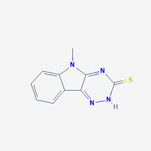 The mechanism of action of 5-Methyl-1,2,4-triazino[5,6-b]indole-3-thiol involves its interaction with molecular targets such as iron ions. The compound acts as an iron chelator, binding to ferrous ions and disrupting iron homeostasis in cells . This leads to the inhibition of cell proliferation and induction of apoptosis, particularly in cancer cells . The compound also affects mitochondrial pathways, contributing to its pro-apoptotic effects .