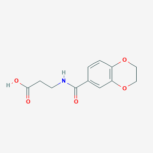 3-[(2,3-Dihydro-benzo[1,4]dioxine-6-carbonyl)-amino]-propionic acid is a chemical compound with the molecular formula C12H13NO5 It is a derivative of benzo[1,4]dioxine, featuring a carbonyl group and an amino acid moiety