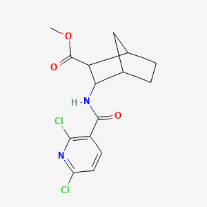 The synthesis of Methyl 3-[(2,6-dichloropyridine-3-carbonyl)amino]bicyclo[2.2.1]heptane-2-carboxylate typically involves multi-step reactions that incorporate the bicyclic structure with functionalized pyridine derivatives. The compound's unique bicyclic framework contributes to its biological activity, which is often enhanced by the presence of the dichloropyridine moiety.