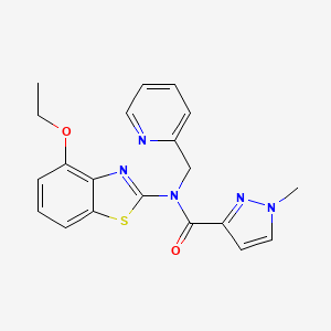 N-(4-ethoxybenzo[d]thiazol-2-yl)-1-methyl-N-(pyridin-2-ylmethyl)-1H-pyrazole-3-carboxamide is a novel compound characterized by its unique structural features, which include a thiazole ring, a pyrazole moiety, and a pyridine group. This combination of heterocycles suggests significant potential for various biological activities, particularly in medicinal chemistry.