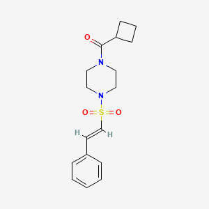 Cyclobutyl-[4-[(E)-2-phenylethenyl]sulfonylpiperazin-1-yl]methanone is a complex organic compound that features a cyclobutyl group, a phenylethenyl group, and a sulfonylpiperazine moiety