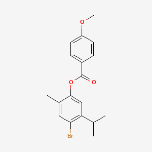 4-Bromo-5-isopropyl-2-methylphenyl 4-methoxybenzenecarboxylate is a chemical compound with the molecular formula C18H19BrO3 and a molecular weight of 363.25 . This compound is known for its unique structure, which includes a bromine atom, an isopropyl group, and a methoxybenzenecarboxylate ester group. It is used in various scientific research applications due to its distinct chemical properties.