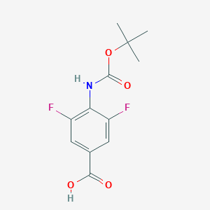 3,5-Difluoro-4-[(2-methylpropan-2-yl)oxycarbonylamino]benzoic acid: is an organic compound with the molecular formula C12H13F2NO4. This compound is characterized by the presence of two fluorine atoms attached to a benzene ring, along with a tert-butoxycarbonylamino group. It is used in various scientific research applications due to its unique chemical properties.