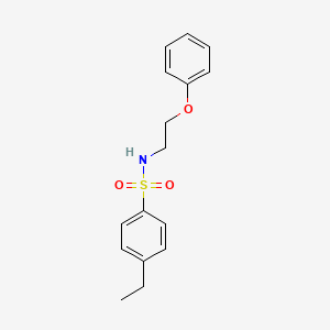 The synthesis of 4-ethyl-N-(2-phenoxyethyl)benzenesulfonamide typically involves the reaction of 4-ethylbenzenesulfonyl chloride with 2-phenoxyethylamine under controlled conditions. The reaction is usually carried out in the presence of a base such as triethylamine to neutralize the hydrochloric acid formed during the reaction. The reaction mixture is then purified using standard techniques such as recrystallization or column chromatography to obtain the desired product .