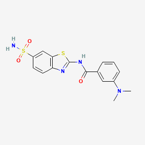 The mechanism of action of 3-(dimethylamino)-N-(6-sulfamoyl-1,3-benzothiazol-2-yl)benzamide would depend on its specific application. In medicinal chemistry, it may interact with various molecular targets such as enzymes or receptors, modulating their activity. The benzothiazole ring is known to interact with DNA, proteins, and other biomolecules, potentially leading to its biological effects.
