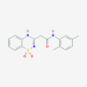 The compound features a benzothiadiazine core , characterized by a dioxido group and a 2,5-dimethylphenyl substituent attached to an acetamide moiety. This specific arrangement may confer distinct biological activities compared to other derivatives in the same class. The molecular formula is with a molecular weight of 343.4 g/mol .