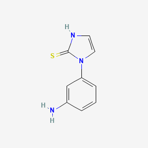 The mechanism of action of 1-(3-aminophenyl)-1H-imidazole-2-thiol involves its interaction with various molecular targets. The thiol group can form covalent bonds with cysteine residues in proteins, potentially inhibiting enzyme activity. The imidazole ring can interact with metal ions, affecting metalloproteins and enzymes .