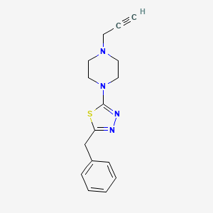 The mechanism of action of 2-Benzyl-5-(4-prop-2-ynylpiperazin-1-yl)-1,3,4-thiadiazole would depend on its specific application. In medicinal chemistry, it may interact with biological targets such as enzymes or receptors, modulating their activity. The molecular targets and pathways involved would need to be elucidated through experimental studies.