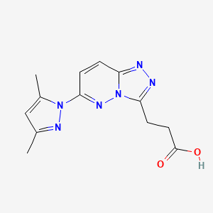 3-(6-(3,5-Dimethyl-1H-pyrazol-1-yl)-[1,2,4]triazolo[4,3-b]pyridazin-3-yl)propanoic acid is a complex organic compound characterized by its unique structure, which includes a pyrazolyl group, a triazolopyridazine moiety, and a propanoic acid chain