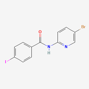 Disclaimer: No specific experimental or research data for the compound N-(5-bromopyridin-2-yl)-4-iodobenzamide has been published in publicly accessible scientific literature. The following sections detailing its synthesis, properties, and spectroscopic data are hypothetical and provided for illustrative purposes only . This information is constructed based on established principles of organic chemistry and data from structurally related compounds.