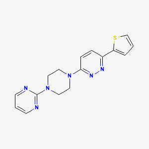 3-[4-(Pyrimidin-2-yl)piperazin-1-yl]-6-(thiophen-2-yl)pyridazine is a heterocyclic compound that features a pyridazine ring substituted with a pyrimidinyl-piperazine and a thiophenyl group