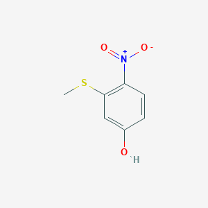 This compound's chemical behavior is defined by the interplay of its three functional groups on the benzene (B151609) ring: the hydroxyl (-OH), the methylthio (-SCH3), and the nitro (-NO2) groups. The nitro group is strongly electron-withdrawing, which increases the acidity of the phenolic proton compared to phenol (B47542) itself. nih.gov This electron-withdrawing nature also deactivates the aromatic ring towards electrophilic substitution.