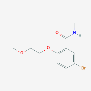 5-Bromo-2-(2-methoxy-ethoxy)-N-methyl-benzamide is an organic compound with the molecular formula C11H14BrNO3 It is a derivative of benzamide, featuring a bromine atom at the 5-position and a methoxyethoxy group at the 2-position