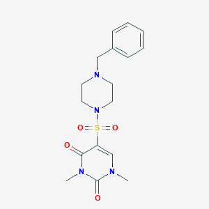 The synthesis of 5-(4-Benzylpiperazin-1-yl)sulfonyl-1,3-dimethylpyrimidine-2,4-dione involves several steps. One common method includes the reaction of 1,3-dimethyluracil with 4-benzylpiperazine in the presence of a sulfonylating agent. The reaction typically occurs under controlled temperature and pH conditions to ensure the desired product is obtained with high yield and purity .