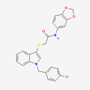 N-(2H-1,3-benzodioxol-5-yl)-2-({1-[(4-bromophenyl)methyl]-1H-indol-3-yl}sulfanyl)acetamide is unique due to its combination of a benzodioxole ring, an indole moiety, and a bromophenyl group, which confer distinct chemical and biological properties. This makes it a versatile compound for various applications in research and industry.