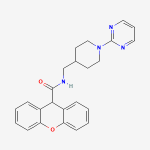 The synthesis of N-((1-(pyrimidin-2-yl)piperidin-4-yl)methyl)-9H-xanthene-9-carboxamide typically involves multi-step organic reactions. One common synthetic route starts with the preparation of the pyrimidine and piperidine intermediates, followed by their coupling with a xanthene derivative. The reaction conditions often include the use of solvents like ethanol or dimethyl sulfoxide (DMSO) and catalysts such as palladium or copper complexes to facilitate the coupling reactions .