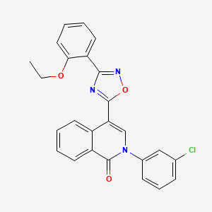 2-(3-chlorophenyl)-4-[3-(2-ethoxyphenyl)-1,2,4-oxadiazol-5-yl]-1,2-dihydroisoquinolin-1-one is a complex organic compound that has garnered interest in various fields of scientific research due to its unique structural features and potential applications. This compound is characterized by the presence of a chlorophenyl group, an ethoxyphenyl group, and an oxadiazole ring fused to an isoquinolinone core.
