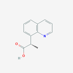 Uniqueness: (2S)-2-Quinolin-8-ylpropanoic acid is unique due to its chiral center and the presence of both a quinoline ring and a propanoic acid group. This combination allows for diverse chemical reactivity and potential biological activity, making it a valuable compound in various fields of research and industry .